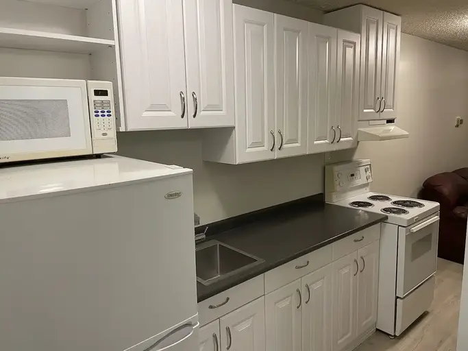 Cozy and clean 1Br suite, new paint, kitchen, and flooring. Includes utilities, cable and wifi.Walk to groceries, shopping and restaurants. 4 miles to the lake, close to hiking, camping and fishing.On-site coin laundry and maintenance.$740 per monthCall Rose 403 992 9044