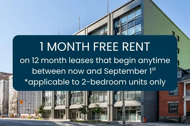 Now offering 1 month free rent on 12-month leases when you sign a lease for a 2-bedroom unit. Offering Executive Bachelors, 1 Bedroom, and 2 Bedroom options. Each apartment features 5 stainless steel appliances, large windows, and individually controlled central heat and air conditioning.To book a viewing, please call John at 613-978-0524.Enjoy the convenience and efficiency of living in an apartment designed to work for you, some of the amenities we've included are:Executive Bachelor, One Bedroom and Two Bedroom OptionsAppliances included in your suite - Stainless steel dishwasher, fridge, stove, washer and dryerIndividually controlled heating and coolingHighly secure and personally controlled building accessLarge windows with window coveringsOn-site fitness centreTheaterRooftop patio with BBQ and fire pitsParty Room Business LoungeBicycle storageSmoke Free BuildingPet FriendlyBeautifully appointed lobbyTo book a viewing, please call John at 613-978-0524.Proudly Managed by District Realty