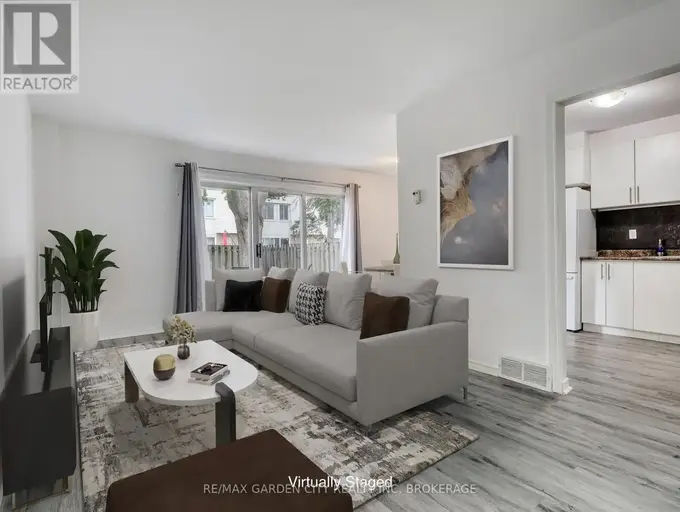 Looking a great rental? This move-in ready north end townhouse checks all the boxes for smart tenants who want comfort and everyday convenience. Grocery runs to Sobeys, errands at the dollar store and Giant Tiger, banking, walk-in clinics, schools, parks, and restaurants are all just minutes away. Public transit and the QEW are close too, making your commute a breeze. Inside, the bright open concept living and dining area lets you arrange your space your way. Step through patio doors to your private fenced yard, shaded by a mature tree, perfect for BBQs or lazy summer evenings. Upstairs, you'll find two spacious bedrooms, including a primary suite with a walk-in closet. Enjoy peace of mind with recent updates like central air and an updated bathroom. Need more room? The partially finished basement adds extra living space and plenty of storage. This affordable, low-maintenance townhome also includes a designated parking spot and a pet-friendly policy with up to 2 dogs welcome. Set up your showing today. (3 Virtually Staged Photos). Tenant responsible for electricity, gas, water heater rental, and $100.00/month towards water. First & Last month's rent required. (id:61160)