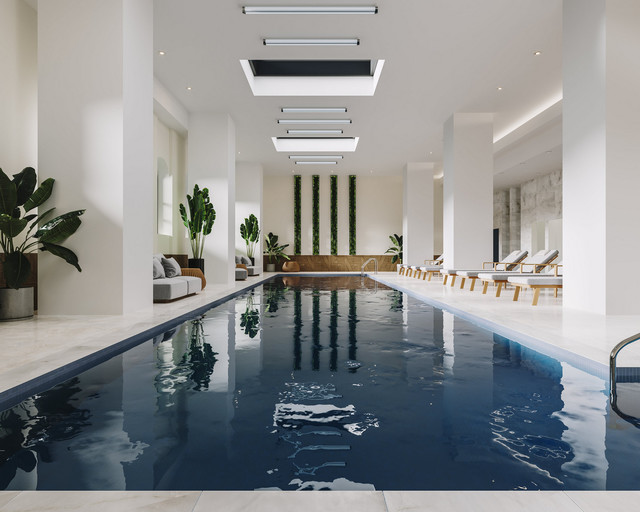 Experience rental living at its finest. In the heart of Montreal’s downtown, Le George establishes its impressive presence as home to trendsetters and tastemakers, to those seeking a metropolitan living experience unlike any other. With its distinctive architecture, celebrated location, executive workspaces and wellness centers, Le George is among the most desired apartment buildings in Montréal. Combining the harmony of stylish form and modern construction Le George was built and comprehensively designed with convenience in mind.Indulge on the 46th floor in the highest exclusive residential lounge in the city, overlooking the skyline with Mount Royal in the distance. Relax by the pool before enjoying a movie in our theatre. Take your fitness to new levels in our two state-of-the-art fitness centers featuring a cross-fit room and a fully equipped gym. Recover with restorative meditation in our yoga room featuring an authentic salt wall. It’s all been meticulously curated and delivered for the residents of Le George.
