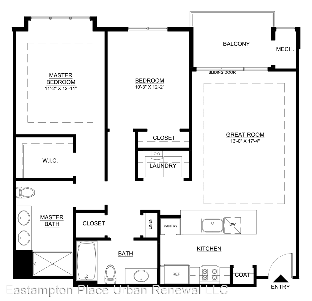 MacArthur End Unit (Penthouse) - This third-floor two-bedroom, two-bathroom end-unit home features a large kitchen with granite counter tops, tiled backsplash, GE Energy Star appliances, pantry, and custom cabinetry. The master bedroom with tray ceiling enjoys a private bath and oversized walk-in closet. Walk out to the large, private balcony from the kitchen or great room with tray ceiling. With vaulted ceilings and ceiling fans in the master bedroom and great room, a full-size washer and dryer, ample closets and spacious second bedroom with bay window, see why this third floor MacArthur is a great place to call home! *Rental Rate quoted is subject to change based upon lease term.