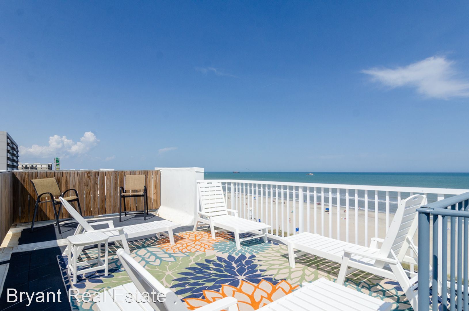 This gorgeous unit is on the most desirable top floor, offering panoramic views of the beach and ocean from both the covered balcony as well as the private rooftop deck. The unit boasts three bedrooms and two and a half baths, a full kitchen with open concept to the spacious dining and living areas. The primary suite has a King bed, sliding glass doors that open to the balcony, en suite bath with double vanity and a large walk-in shower. The second bedroom has a Queen bed and is conveniently located beside the hall full bath with tub shower. The third bedroom has a Full bed and on suite half bath. Extras include an in-unit washer/dryer, 60” 4K TV in the living room, and high-speed internet access.