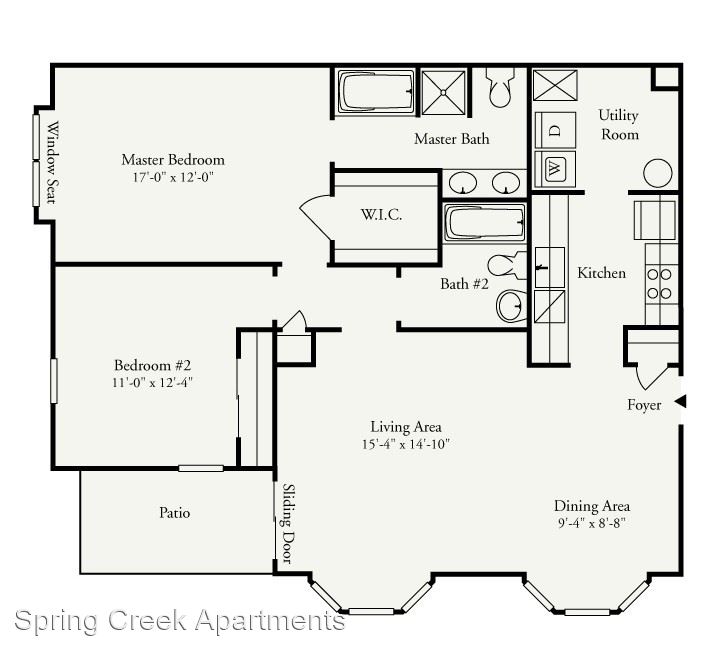 Ficus Premium 1st Floor - *Rental Rate quoted is subject to change based upon lease term. This beautiful two-bedroom, two-bathroom home is located on the first floor. The galley-style kitchen provides nice separation from your living areas. The dining and living rooms feature beautiful bay windows. The Master bedroom includes a window seat, a spacious walk-in closet, and direct access to the master bathroom, which offers a shower stall, soaking tub, and double vanity.