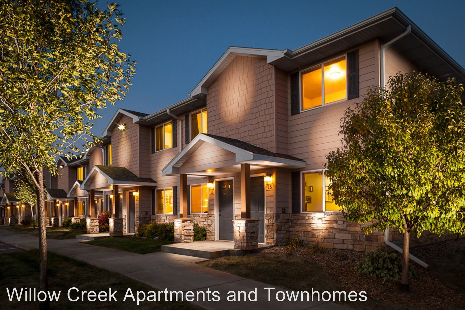 Willow Creek Townhomes - Willow Creek Townhomes are conveniently located within minutes of shopping, restaurants, movies, schools, hospitals and parks. Offering 1 and two bedroom units, we have many amenities that will enrich your life. Being pet friendly with a great dog park, even our four legged tenants are happy. Willow Creek is known for excellent service and care for our tenants. We look forward to being the place you call Home. Prices subject to change based on terms and availability. Please contact us for a specific price quote.