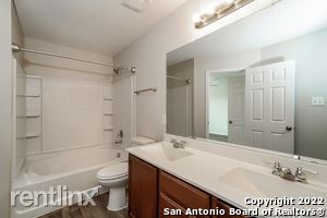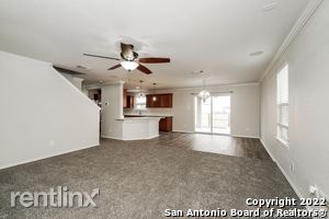 This charming 3 bedroom, 2.5 bath home is in the desirable Legend Point Community and conveniently located by the 46, 35, and the 10. This property has had numerous updates including all new stainless-steel appliances (refrigerator, stove, dishwasher, microwave), new quartz counter tops in the kitchen, fresh interior paint, new carpet, and vinyl flooring (LVP) throughout the home. This home features a spacious floor plan and tons of natural light in the living room. The large kitchen has new stainless-steel appliances, with lovely quartz countertops, lots of cabinet space, and a breakfast bar overlooking the breakfast area and the living room. Upstairs, the loft makes an excellent flex space. The spacious main bedroom has an ensuite bath with dual vanities and a walk-in closet. The other bedrooms are also spacious and share a bath. The laundry room has W/D hookups and shelves for your convenience. The low-maintenance fenced backyard with a covered slab patio is perfect for entertaining. Please verify all schools and room sizes. (RLNE7977027)